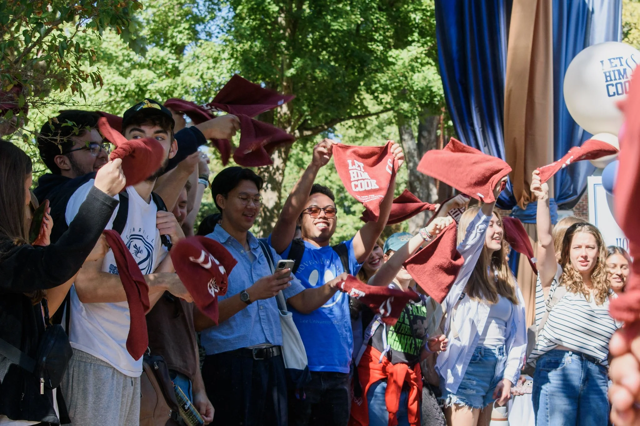The celebration continued after chapel with a “Cookout With the Cooks.” Students welcomed President Phil Cook and his wife Tonya to the Ped Mall with cheers, branded towels and t-shirts, and shouts of “let him cook!”